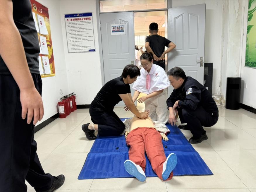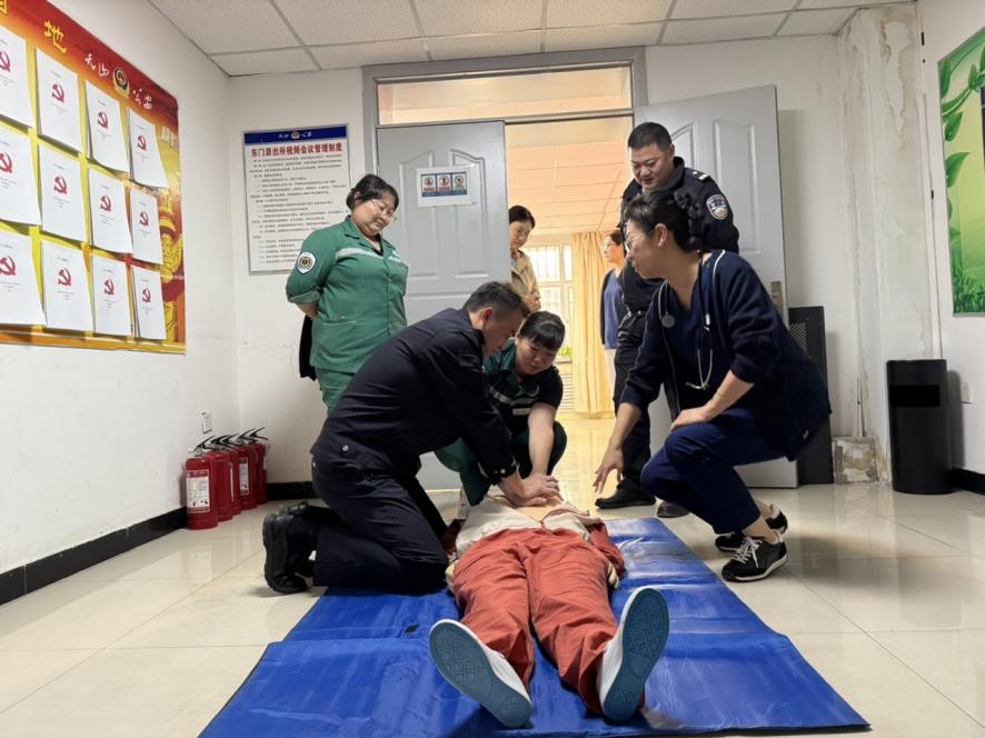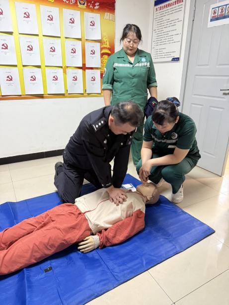 针对警察职业可能面临的突发状况,掌握急救技能至关重要。为此,急诊科的党员们精心准备了生动的“急救课堂”:利用模拟人教具,详细讲解并演示了心肺复苏(CPR)的操作流程、技术要点和注意事项。干警们学习热情高涨,在专家指导下纷纷上前进行实操练习,力争掌握这一“黄金4分钟”内的救命技能。同时,专家们还系统讲解了自动体外除颤器(AED)的使用原理、操作步骤以及配合心肺复苏(CPR)使用的关键技巧,提升了干警们在紧急情况下利用自动体外除颤器(AED)实施有效救助的能力与信心。