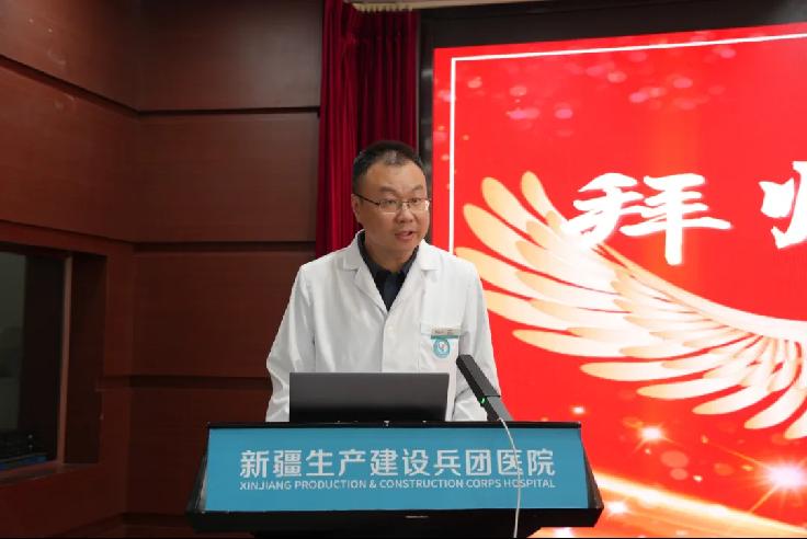 党委副书记、院长江涛代表医院党委向结对师徒表示祝贺,指出“师带徒” 是援疆医疗帮扶纽带,能提升边疆医疗水平,实现技术与“敬佑生命”等职业精神的“双向奔赴” 传承。同时,他寄语导师“知无不言”带教,青年医师“不负师恩”奋进,盼师徒携手助力医院高质量发展与兵团医疗事业进步。