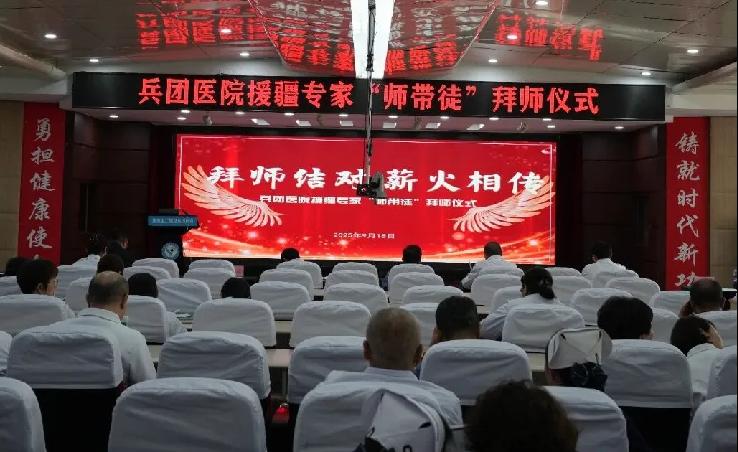 2025年9月18日兵团医院隆重举行援疆专家“师带徒”拜师仪式,旨在充分发挥援疆专家资源优势,加强医院人才梯队建设,提升本土医务人员的专业技术水平,为医院高质量发展注入新动能。兵团医院领导班子、援疆专家团队、医院中层干部及结对师徒代表共同参加了此次活动。仪式由党委委员、副院长李辉主持。